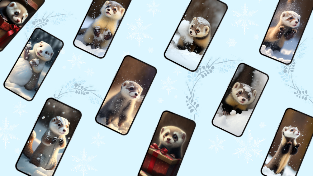 AI-generated Ferret Winter Collection wallpapers! In this collection you will get 10 cute ferret wallpapers.